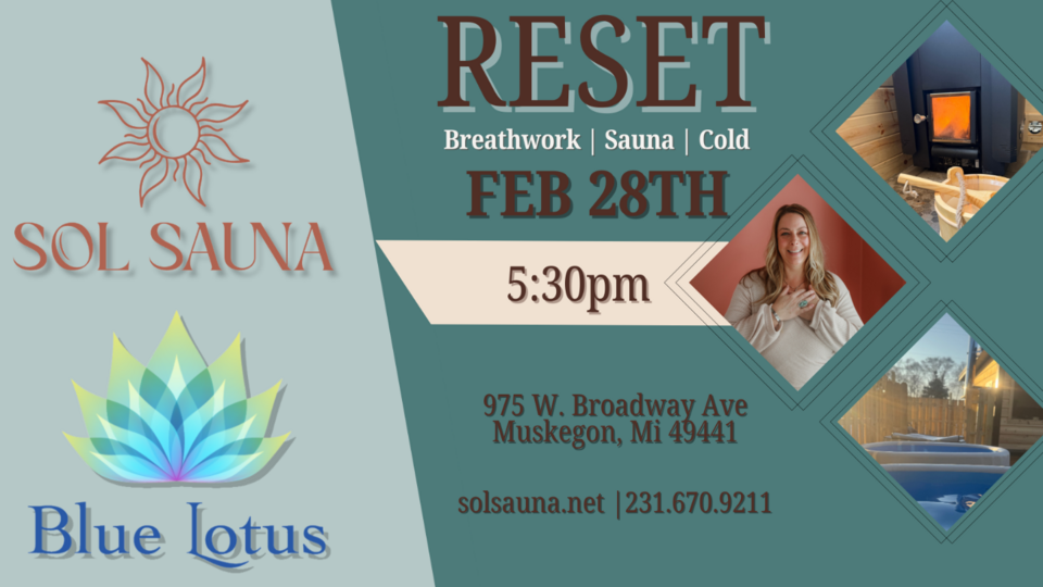 Blue Lotus Mind Body Soul and SOL Sauna come together to offer an evening of breath work and sauna: